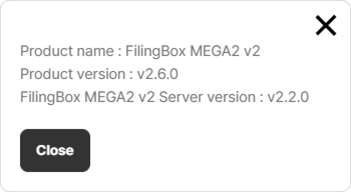 A window will appear displaying the Product Name and the current Version Information.