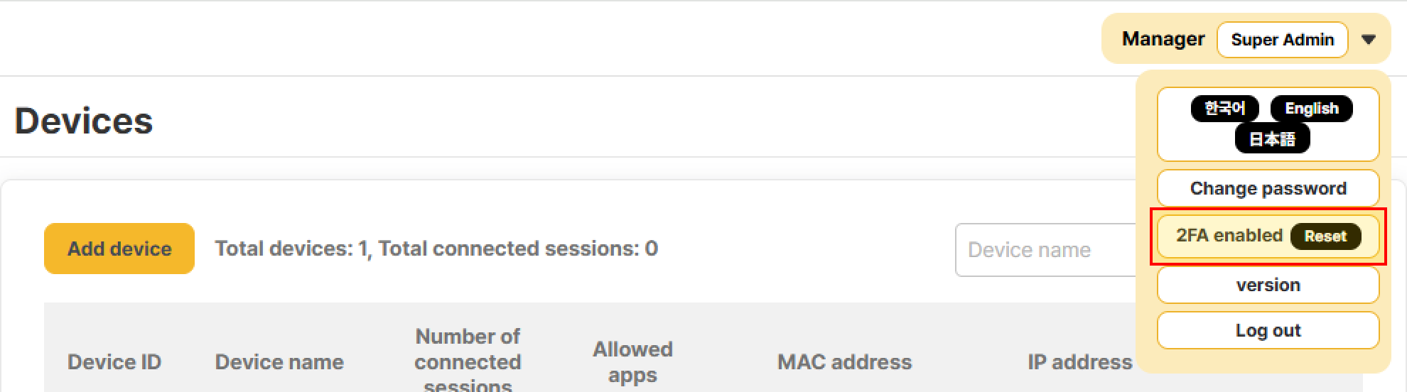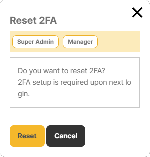 From the dropdown menu that appears, click the [2FA enabled (Reset)] button.