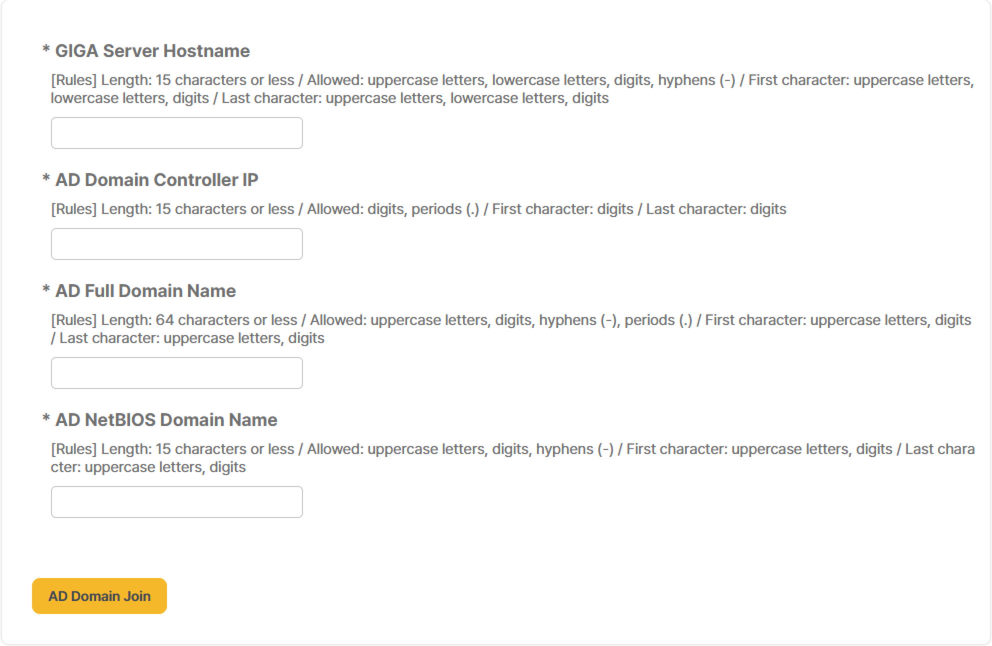 Join Active Directory Domain: Enter the information for the Active Directory server you wish to join, and then click Join AD Domain.