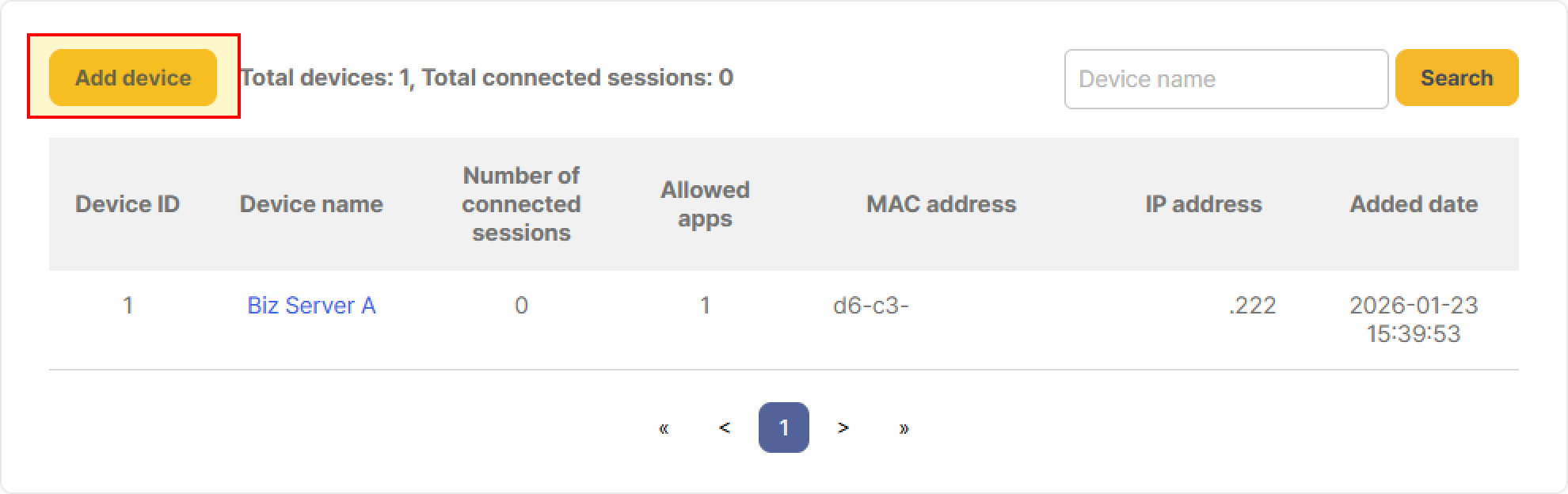 To add a new device, click the [Add Device] button located at the top left of the Device screen. You will be redirected to the Device Information screen.