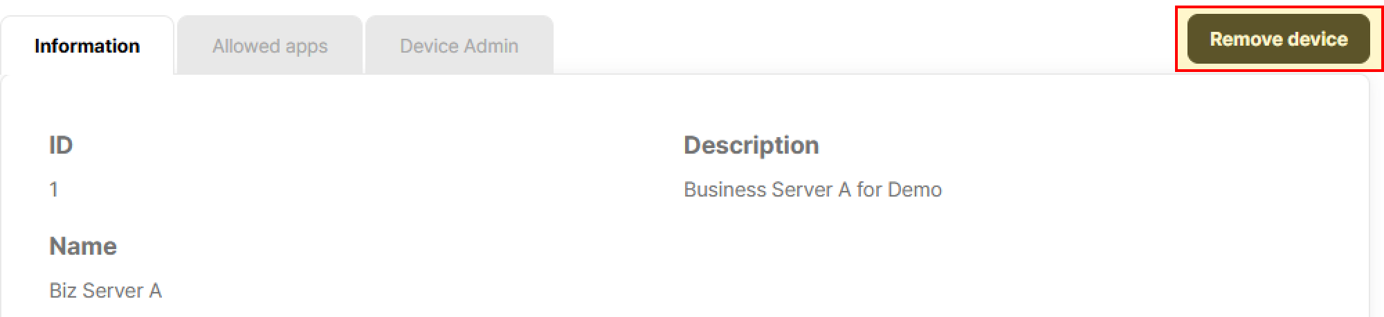 To delete a device, click on its Device Name in the list to open the Device Information page.