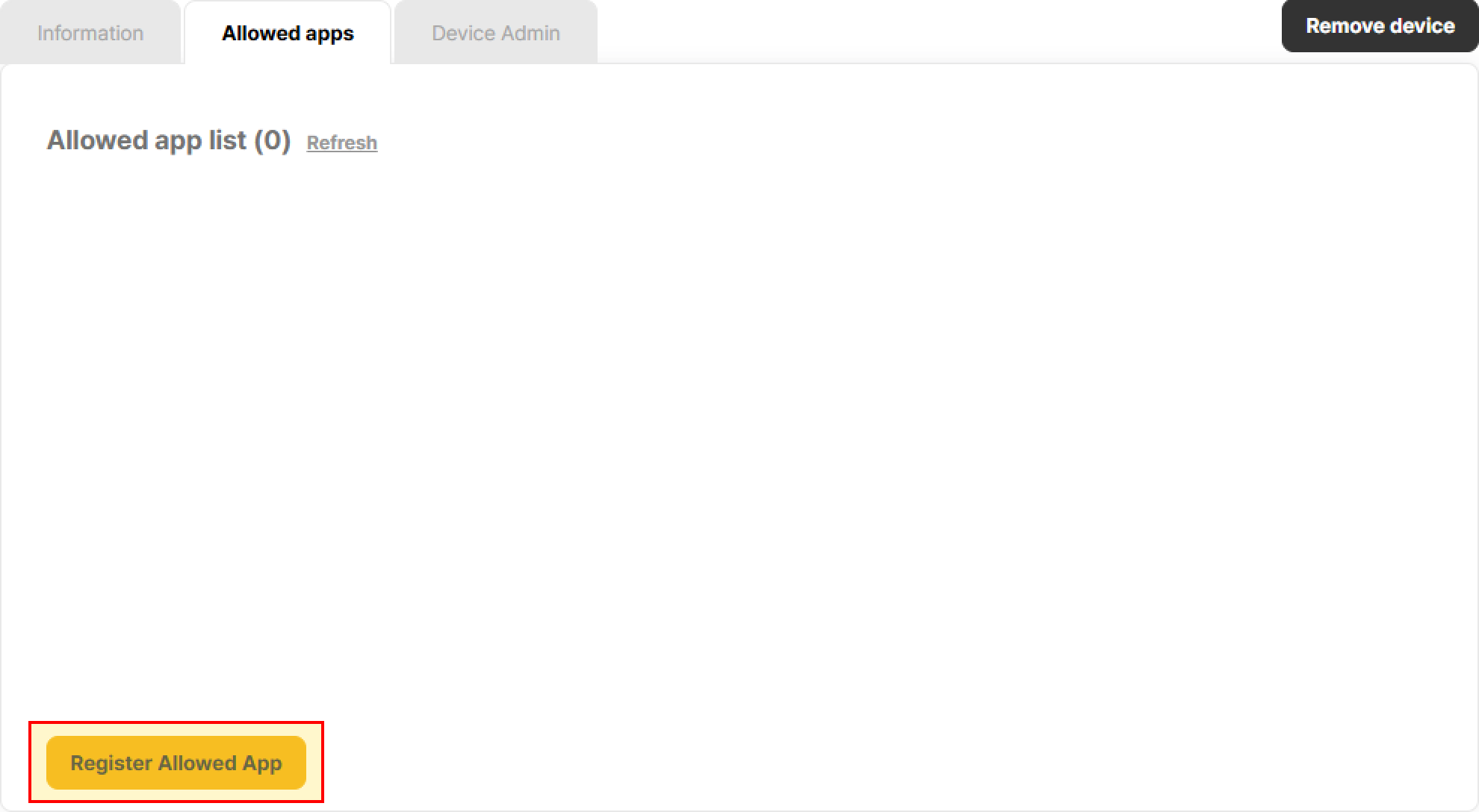 To add a new application, click the [Register Allowed App] button at the bottom of the screen.