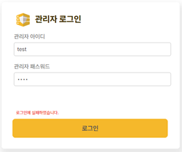 제한 횟수 내에서, 로그인에 실패하는 경우, 아래와 같은 화면이 출력됩니다.