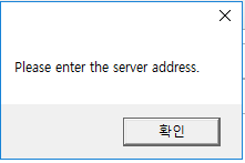 ‘IP address’ 필드에 값을 입력하지 않고, ‘Connect’ 버튼을 클릭 시, 아래와 같은, 에러 메시지가 출력된다.
