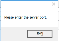 ‘Port’ 필드에 값을 입력하지 않고, ‘Connect’ 버튼을 클릭 시, 아래와 같은, 에러 메시지가 출력된다.
