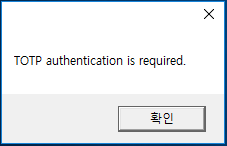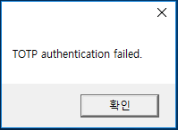 만약, OTP 인증에 실패하면, 아래와 같은, 에러 메시지가 팝업된다.