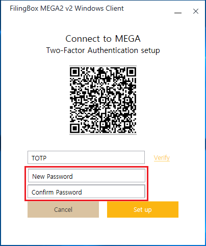 아래와 같은 필드에 변경하고자 하는 비밀번호를 입력한 후, ‘Set up’ 버튼을 클릭한다.