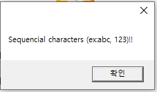 → 동일한 문자나, 숫자를 3회 이상 연속적으로 입력하면 안된다.
