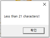 길이가 20자를 초과한 경우, 에러 화면 예)