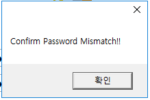 ‘New Password’ 필드에 입력한 값과 다른 값을 입력 시, 아래와 같은 에러 메시지가 표시된다.