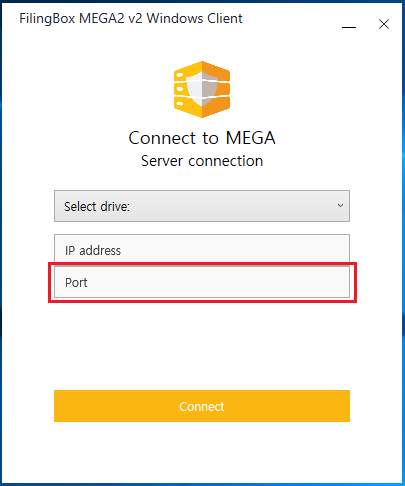 - 로그인할 FilingBox MEGA2 v2 Server의 port 정보 입력