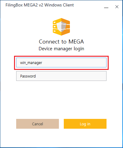클라이언트에 로그인할 수 있는 장치 관리자의 로그인 ID와 암호를 잊어버렸다면, FilingBox MEGA2 v2 Server 관리자에게 문의한다.