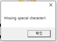특수문자가 빠졌을 때, 에러 화면 예)