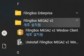 FilingBox MEGA2 v2 Windows Client 실행 파일이 시작 메뉴에 등록되었는지 확인한다. -