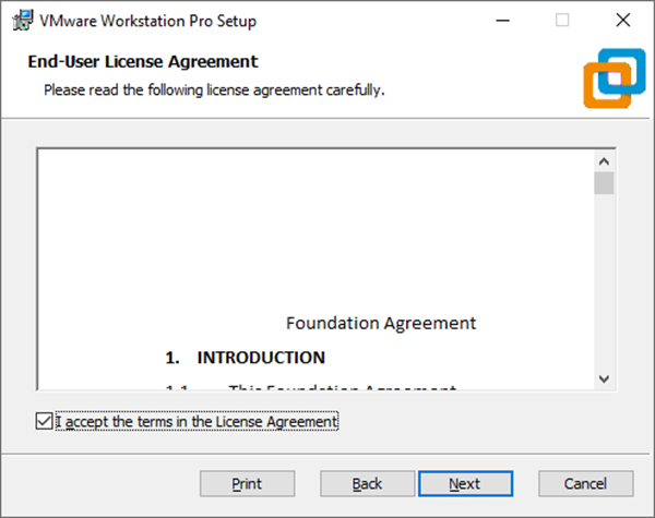 End-User License Agreement에 동의 후 Next를 선택합니다.