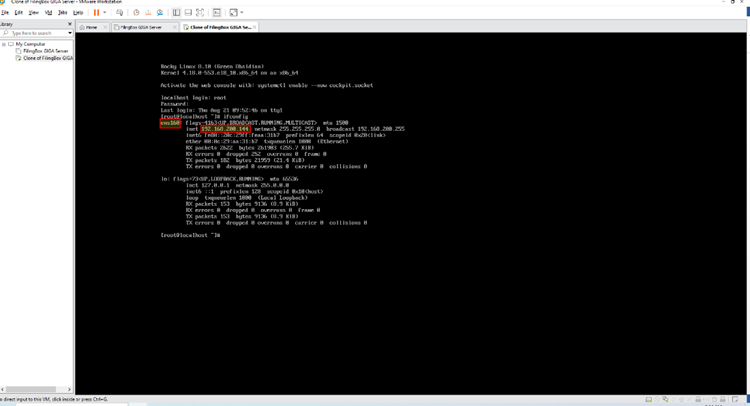 실행 결과에서 ens160의 inet 값이 자동으로 할당된 FilingBox GIGA 서버의 IP 주소입니다.