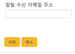 알림 수신 이메일 주소: 이벤트가 발생되었을 시 전송되는 이메일을 받을 주소를 설정합니다. 설정하기 위해서는 하단의 ‘업데이트’ 버튼을 클릭합니다.