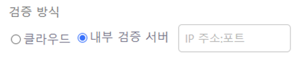 서버가 설치된 시스템이 외부 시스템과 IP 통신을 할 수 없는 환경이라면, ‘내부 검증 서버’ 방식을 선택해야 합니다.